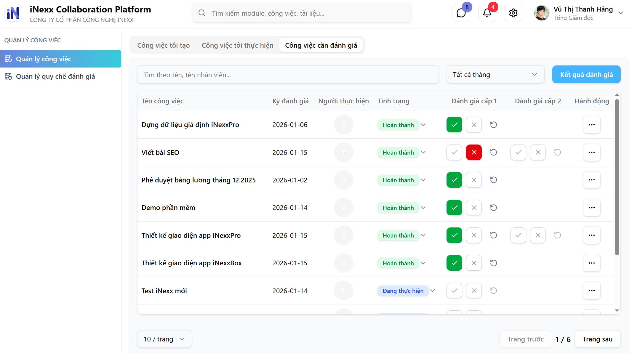 iNexxTask cho phép doanh nghiệp quản lý tiến độ công việc chi tiết, từ lập kế hoạch, phân công đến theo dõi thực hiện. Hệ thống hỗ trợ đánh giá công việc dựa trên tiêu chí cụ thể, tự động tạo phiếu đánh giá, ghi nhận nhận xét và thảo luận trực tiếp trên từng nhiệm vụ. Nhờ đó, tăng tính minh bạch, nâng cao trách nhiệm và hiệu quả làm việc của đội ngũ.