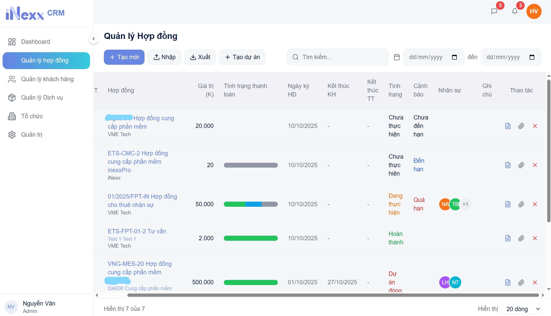 iNexxCRM cho phép doanh nghiệp theo dõi công nợ chi tiết theo từng hợp đồng, không chỉ dừng ở tổng số tiền phải thu.